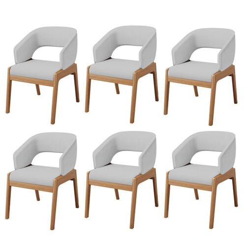 Kit 06 Cadeiras de Jantar e Estar Living Estofada Lince L02 Linho Cinza - Lyam Decor - Cinza Claro