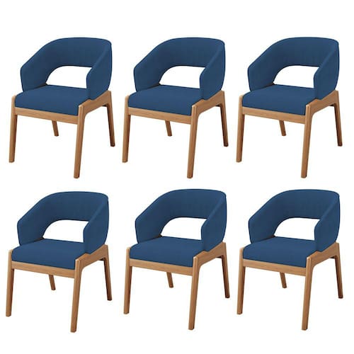 Kit 06 Cadeiras de Jantar e Estar Living Estofada Lince L02 Suede Azul Marinho - Lyam Decor