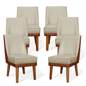 Kit 06 Cadeiras de Jantar Virgínia Composê e Sintético Bege/Nozes