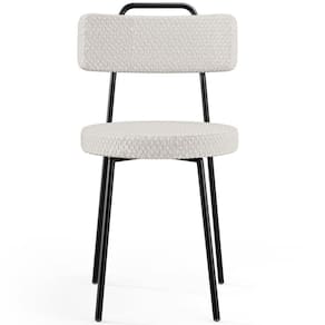 É cadeira de balanço: Não se aplica | Cor da estrutura da cadeira: Preto | Material do estofamento: Espuma Laminada | Desenho do tecido: Não se aplica | Cor do estofamento: Bouclê Cru | Cor do assento: Cru