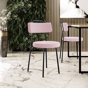 Amplamente moderna, dispondo de muito realce e design singular, o Kit 06 Cadeiras Decorativas Estofadas Para Sala De Jantar Barcelona L02 Bouclê Rosê - Lyam Decor vem com a personalidade e elegância que sua decoração merece! Estruturada em aço carbono, contrasta lindamente com o encosto e assento estofados, cabe mencionar ainda seu revestimento em Couríssimo, é confeccionada por materiais de excelente qualidade, extremamente resistentes e aconchegantes.