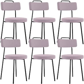 Amplamente moderna, dispondo de muito realce e design singular, o Kit 06 Cadeiras Decorativas Estofadas Para Sala De Jantar Barcelona L02 Suede Rosê - Lyam Decor vem com a personalidade e elegância que sua decoração merece! Estruturada em aço carbono, contrasta lindamente com o encosto e assento estofados, cabe mencionar ainda seu revestimento em Couríssimo, é confeccionada por materiais de excelente qualidade, extremamente resistentes e aconchegantes.