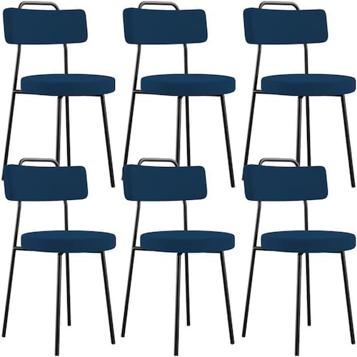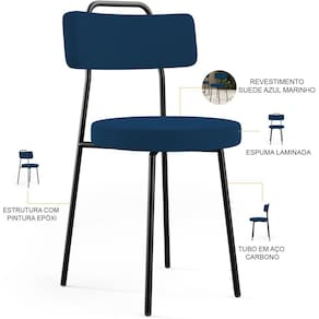 Amplamente moderna, dispondo de muito realce e design singular, o Kit 06 Cadeiras Decorativas Estofadas Para Sala De Jantar Barcelona L02 Suede Azul Marinho - Lyam Decor vem com a personalidade e elegância que sua decoração merece! Estruturada em aço carbono, contrasta lindamente com o encosto e assento estofados, cabe mencionar ainda seu revestimento em Couríssimo, é confeccionada por materiais de excelente qualidade, extremamente resistentes e aconchegantes.