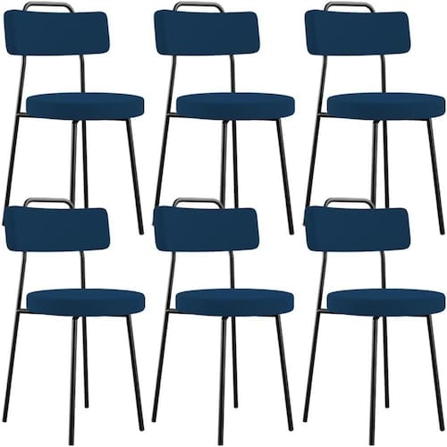 Amplamente moderna, dispondo de muito realce e design singular, o Kit 06 Cadeiras Decorativas Estofadas Para Sala De Jantar Barcelona L02 Suede Azul Marinho - Lyam Decor vem com a personalidade e elegância que sua decoração merece! Estruturada em aço carbono, contrasta lindamente com o encosto e assento estofados, cabe mencionar ainda seu revestimento em Couríssimo, é confeccionada por materiais de excelente qualidade, extremamente resistentes e aconchegantes.