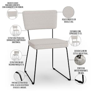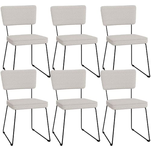 O espetáculo que é o Kit 06 Cadeiras Decorativas Estofada Para Sala De Jantar Allana L02 Bouclê Cru - Lyam vem para agregar ainda mais valor na decoração da sua casa. Sua estrutura em aço remete-nos ao estilo industrial que surgiu em Nova York no século XX, já o assento e encosto estofados trazem equilíbrio e conforto criando a combinação perfeita para o ambiente.