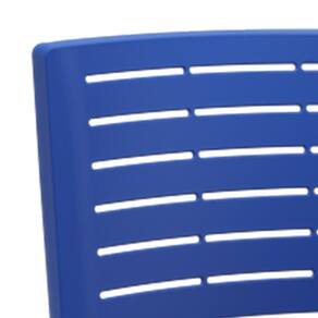 Assento e encosto compostos por polipropileno injetado com acabamento texturizado na cor Azul.
