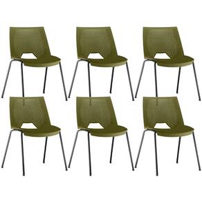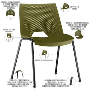 Encosto e assento monobloco, com material injetado em Polipropileno (PP), na tonalidade Verde.