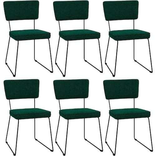 O espetáculo que é o Kit 06 Cadeiras Decorativas Estofada Base De Aço Allana L02 Bouclê Verde - Lyam Decor vem para agregar ainda mais valor na decoração da sua casa. Sua estrutura em aço remete-nos ao estilo industrial que surgiu em Nova York no século XX, já o assento e encosto estofados trazem equilíbrio e conforto criando a combinação perfeita para o ambiente. Cabe mencionar também o revestimento em bouclê que possui textura incrível e acabamento impecável.