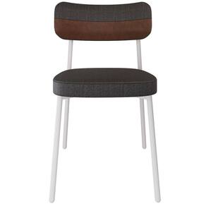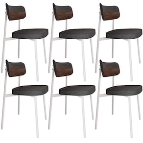 Kit 06 Cadeiras Estofada Para Sala De Jantar Astrid Branco C01 Linho Preto Courino Whisky - Lyam Decor