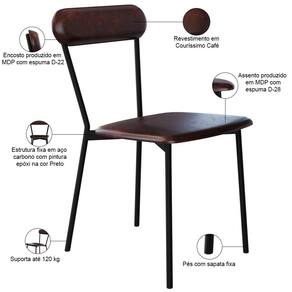 SizeDescription: Altura: 243 cm x Largura: 43 cm x Profundidade: 53 cm | OriginState: PR | Firmeza: Firme | OriginCountry: | Tempo de montagem: na | ProductContents: 06 Cadeiras | É dobrável: Não | Altura do assento a partir do solo: 49 cm | Requer montagem: Não | Largura da cadeira: 43 cm | Cor: Café | Color: Marrom | ColorFamily: Marrom | ColorSimple: Marrom | ColorSupplier: Café | Cor do estofamento: Café | Fabricante: Lyam Decor | Material: Estrutura em Aço e MDP, Revestimento em Couro sintético e espuma | MaterialFamily: Aço, MDP, Couro sintético e Espuma | Model: Liora | SupplierSimpleName: Kit 06 Cadeiras Estofada Para Sala de Jantar Liora Preto C01 Courino Café - Lyam Decor | ProductLength: 53 cm | ProductWidth: 43 cm | ProductWarranty: 90 dias após o do produto | ProductHeight: 243 cm | ProductInstructions: Produto para uso em ambiente interno, nao devendo ficar exposto ao sol, calor e umidade excessivos. | ProductWeight: 5,5 kg | Desenho do tecido: Liso | Cor da estrutura da cadeira: Preto | Cor do assento: Café | É cadeira de balanço: Não | Material do estofamento: Espuma D-22 e D-28 | Altura da cadeira: 243 cm | Profundidade da cadeira: 53 cm | Profundidade do assento: 53 cm | Largura do assento: 43 cm | Espessura do assento: na | É empilhável: Não | Peso máximo suportado: 120 kg