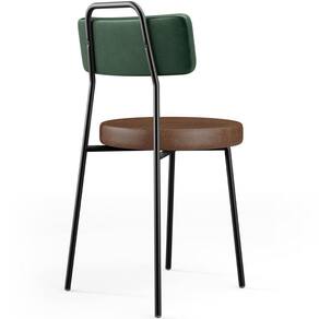 Revestimento do encosto em Facto na cor Verde Musgo e do assento em Couríssimo na cor Marrom, com acabamento semi brilho.