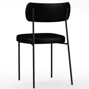 Encosto e assento estofados com espuma laminada, revestidos em Couríssimo na cor Preto.