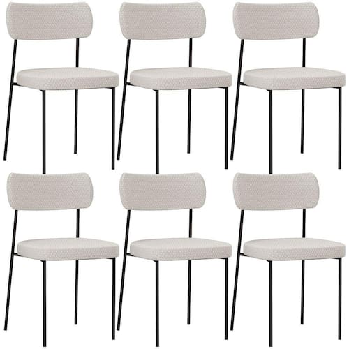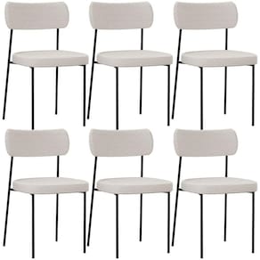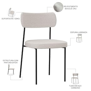 Caso você esteja buscando conforto, realce e praticidade, o Kit 06 Cadeiras Decorativas Estofada Para Sala De Jantar Melina L02 Bouclê Cru - Lyam Decor vai superar todas as suas expectativas. Garante muita comodidade e otimiza o espaço, além de harmonizar com seu estilo decorativo facilmente, podendo ser utilizada em salas de estar, jantar e cozinha, além de dar um toque especial em sua decoração. Sua proposta de design suavizará seu ambiente sem passar despercebida oferecendo mais leveza e receptividade ao seu lar. Estruturada em aço carbono, contrasta lindamente com o encosto e assento estofados que são extremamente confortáveis, resistentes e aconchegantes. Você merece esta incrível combinação em sua casa, adquira já a sua!