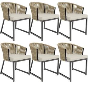 Kit 06 Cadeiras Decorativas Para área Gourmet Cozinha Corda Náutica Bethari D04 Bege - Lyam Decor