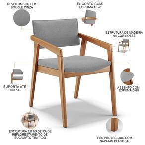 O Kit 06 Cadeiras Para Sala de Jantar Estar Living Giorgia B04 Bouclê Cinza, da Lyam Decor, é perfeito para adicionar um toque moderno à sala de jantar. Com sua estrutura em madeira maciça envernizada, ela traz durabilidade e estilo para o ambiente. O assento e o encosto estofados e revestidos com tecidos alto padrão proporcionam conforto durante as refeições, além de serem fáceis de limpar.
