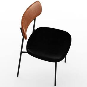 Encosto revestido em Couríssimo na cor Camel e assento revestido em Couríssimo na cor Preto.