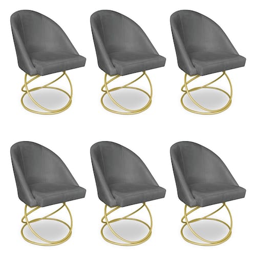 Kit 06 Cadeiras Poltrona de Jantar Bela Suede Base Metálica Luxo Dourado - Pallazio - Grafite
