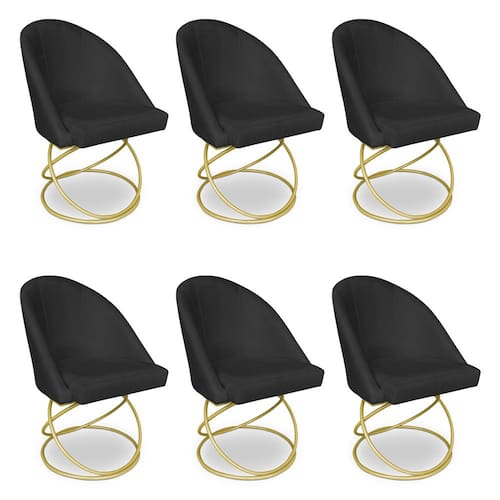Kit 06 Cadeiras Poltrona de Jantar Bela Suede Preto Base Metálica Luxo Dourado - Pallazio