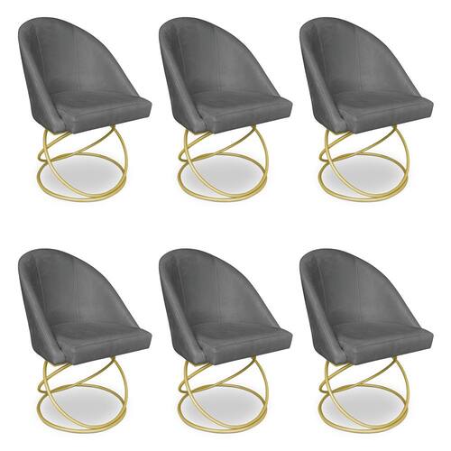 Kit 06 Cadeiras Poltrona de Jantar Bela Veludo Base Metálica Luxo Dourado - Pallazio - Grafite