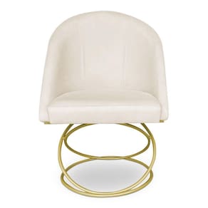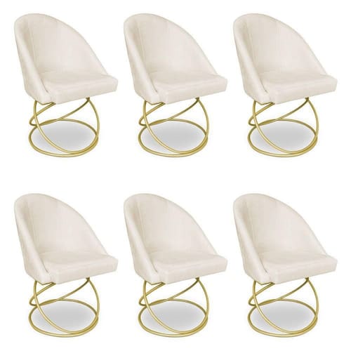 Kit 06 Cadeiras Poltrona De Jantar Bela Veludo Bege Base Metálica Luxo Dourado - Pallazio
