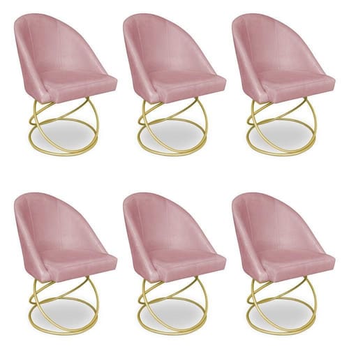 Kit 06 Cadeiras Poltrona De Jantar Bela Veludo Rosê Base Metálica Luxo Dourado - Pallazio