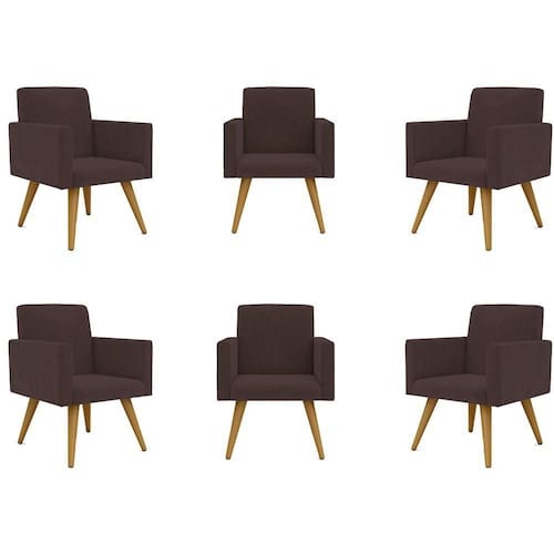 Kit 06 Cadeiras Poltronas Decorativa - Escritório - Recepção Cor:marrom