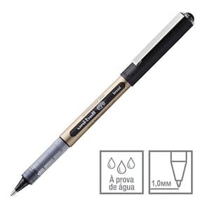 Caneta rollerball com ponta de aço tungstênio que permite uma escrita rápida e menor atrito sobre o papel.