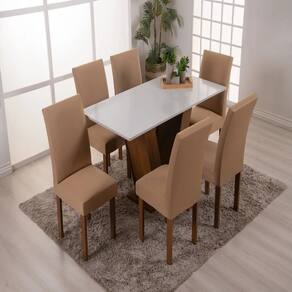 Capas para Cadeira - Proteção e Estilo para sua Sala de Jantar!Renove o ambiente da sua sala de jantar e proteja suas cadeiras com as nossas capas de alta qualidade. Com um conjunto de quatro unidades meticulosamente confeccionadas em tecido de malha gel, estas capas oferecem uma experiência de conforto incomparável.Especificações (medidas):• Largura do encosto: 50 cm• Largura do assento: 45 cm• Altura do encosto: 60cm• Profundidade do assento: 45 cm• Altura do assento: 12cmCaracterísticas:• Tecido Malha Gel• Composição: 100% PoliésterContém na Embalagem:• 06 Capas para CadeiraGarantia do vendedor: 7 dias Marca: Bel Capas