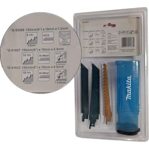 Kit com 6 Lâminas 2x D-51627 - Lâmina de Serra Sabre para Metal 152mm 14 Dentes D-51627 Makita 2x D-51633 - Lâmina de Serra Sabre para Metal 6 X 18 Dentes D-51633 Makita 2x D-53089 - Lâmina de Serra Sabre para Madeira 150mm 18 Dentes D-53089 Makita