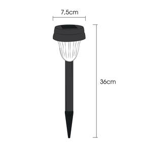 Resistente à água e de alta durabilidade, pode ser facilmente aplicado para balizar e decorar áreas externas. A fonte de iluminação é um LED branco, que pode permanecer aceso por até 10 horas após carga de um dia inteiro de sol.