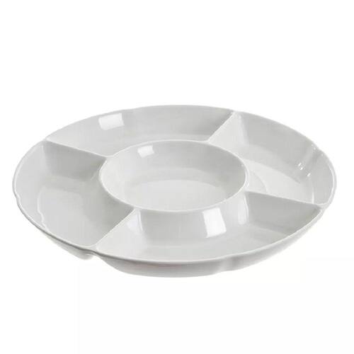 06 Petisqueira Melanina 5 Divisórias Festas Eventos 30cm Linha Branca