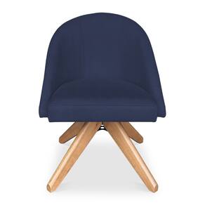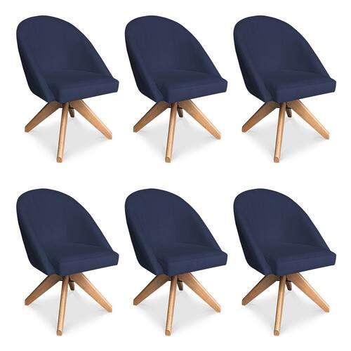 Kit 06 Poltronas Cadeira Giratória Bela Suede Azul Marinho Base de Madeira - Pallazio