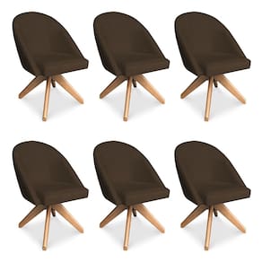 Kit 06 Poltronas Cadeira Giratória Bela Suede Base de Madeira - Pallazio - Marrom