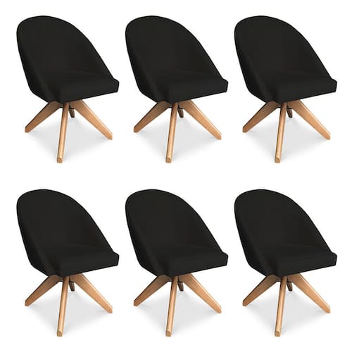 Kit 06 Poltronas Cadeira Giratória Bela Suede Preto Base de Madeira - Pallazio