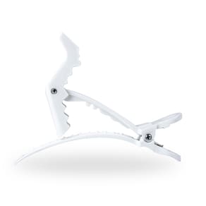 Características Principais: - Formato: A presilha tem uma forma que se assemelha à cabeça de um jacaré, com uma parte superior mais larga que se estreita em direção à parte inferior, imitando a forma da mandíbula do animal.?- Mecanismo de fixação: Possui um mecanismo de mola ou pressão que permite abrir e fechar as mandíbulas, facilitando a fixação no cabelo.?- Dentes: A parte interna das mandíbulas geralmente é equipada com pequenos dentes que ajudam a segurar o cabelo de maneira firme e segura, evitando que escorregue.?- Versatilidade: São versáteis e podem ser usadas de várias maneiras para criar diferentes estilos de penteados, como prender todo o cabelo, fazer um meio-rabo ou simplesmente segurar uma seção específica. - Cor: Branco.