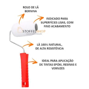 ROLO DE LÃ DE CARNEIRO BERNINA 9CMMARCA: ROMAREF:255-DESCRIÇÃO:-Rolo de lã de carneiro Bernina.-Altura da fibra: 5mm.-Indicado para superfícies lisas, com fino acabamento.-Ideal para aplicação de tintas epóxi, resinas e vernizes. -Lã 100% Natural, de alta resistência.-Indicado para superfícies lisas, com fino acabamento.-Fabricado pelo processo de termofusão.-MODO DE USAR:-Antes do primeiro uso, lave o rolo com água. -Carregue o rolo uniformemente de tinta com ajuda da bandeja de pintura ROMA-Comece a aplicação por uma extremidade da área a ser pintada, fazendo um "W".-Faça o movimento contrário preenchendo toda a área e afinando a camada da pintura.-COMO USAR:-Remova o excesso de tinta.-Tintas a base água: Lavar usando somente água.-Tintas óleo ou esmalte: Lavar com solventes minerais