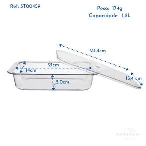 CONTEUDO 06 Travessa Retangular Cristal Transparente com Tampa 14 x 21cm