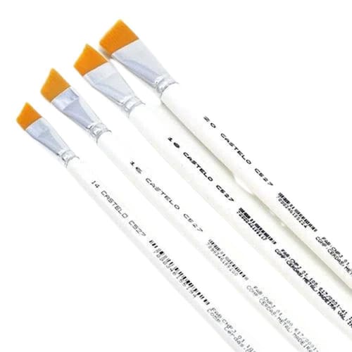 O Kit Pincéis Chanfrados Kit 07 Com 5 Un Castelo Pincéis é perfeito para quem busca qualidade e precisão na pintura em tela. Este kit é composto por 5 pincéis artistícos chanfrados com cabo longo branco.