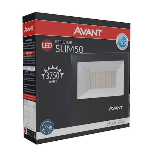 Especificações: > Potência: 50W. > Voltagem: AC 85-265V Bivolt . > Temperatura da cor: Branco frio 6500k . > Carcaça: Alumínio, cor preto. > Ângulo de abertura: 120°. > Proteção: IP65. > Dimensões: 17cm x 15cm. > Vida útil estimada de até 25.000 horas. > Marca: Avant. > Ref: 259501372. > Garantia: 12 meses pelo fabricante.