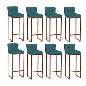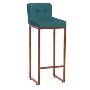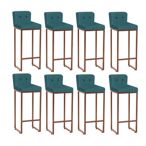 Kit 08 Banqueta Alta C Encosto Luca Industrial Bar Balcão Bistrô Ferro Bronze Botão Suede Azul Turquesa - Ahazzo Móveis