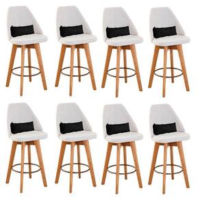 Kit 08 Banquetas Alta Maya Giratória Com Encosto Linho Bege Claro E Almofada Suede Preto - Gat Magazine