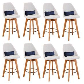 Kit 08 Banquetas Alta Maya Giratória Com Encosto Gourmet Linho Bege E Almofada Sintético Azul Marinho - Gat Magazine