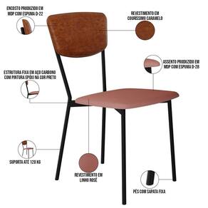 Color: Caramelo | ColorFamily: Caramelo | ColorSimple: Caramelo | ColorSupplier: Caramelo | Material: Estrutura em Aço, MDP, Revestimento em Linho, Couro sintético e espuma | MaterialFamily: Aço, MDP, Linho, Couro sintético e espuma | Model: Village | OriginCountry: Brasil | OriginState: PR | ProductContents: 08 Cadeiras | ProductHeight: 249 cm | ProductInstructions: Produto para uso em ambiente interno, nao devendo ficar exposto ao sol, calor e umidade excessivos. | ProductLength: 53 cm | ProductWarranty: 90 dias após o recebimento do produto | ProductWeight: 52 kg | ProductWidth: 43 cm | SizeDescription: Altura: 249 cm x Largura: 43 cm x Profundidade: 53cm | SupplierSimpleName: Kit 08 Cadeira Para Sala de Jantar Village Preto C01 Linho Rosê Courino Caramelo - Lyam Decor