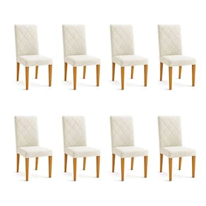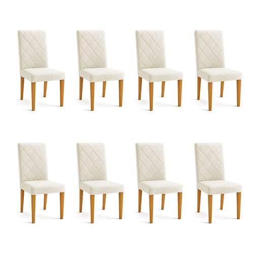 Kit 08 Cadeiras de Jantar Estofada Siena Veludo Bege Pés Trapézio Castanho - Pallazio