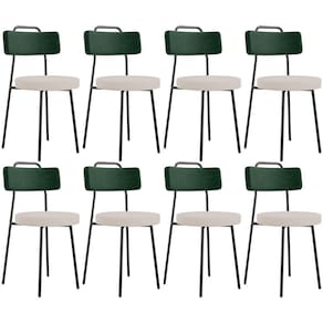 Amplamente moderna, dispondo de muito realce e design singular, o Kit 08 Cadeiras Decorativas Estofada Para Sala Jantar Barcelona L02 Facto Verde Musgo Linho Bege - Lyam vem com a personalidade e elegância que sua decoração merece! Estruturada em aço carbono, contrasta lindamente com o encosto e assento estofados, cabe mencionar ainda seu revestimento em Couríssimo e linho, é confeccionada por materiais de excelente qualidade, extremamente resistentes e aconchegantes.
