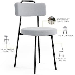 Cor do estofamento: Bouclê Cinza | Desenho do tecido: Não se aplica | Material do estofamento: Espuma Laminada | É cadeira de balanço: Não se aplica | Cor do assento: Cinza | Cor da estrutura da cadeira: Preto