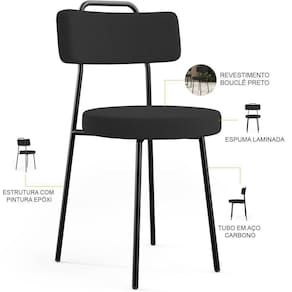 Cor do estofamento: Bouclê Preto | É cadeira de balanço: Não se aplica | Material do estofamento: Espuma Laminada | Cor do assento: Preto | Desenho do tecido: Não se aplica | Cor da estrutura da cadeira: Preto