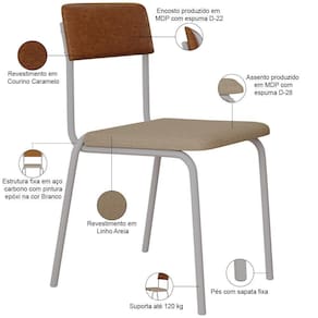 Material: Estrutura em Aço, MDP, Revestimento em Linho, Couro sintético e espuma | Model: Sense | OriginCountry: | Cor do estofamento: AreiaCaramelo | MaterialFamily: Aço, MDP, Linho, Couro sintético e espuma | Cor: Caramelo | Color: Caramelo | ProductContents: 08 Cadeiras | OriginState: PR | Fabricante: Lyam Decor | ColorFamily: Caramelo | SupplierSimpleName: Kit 08 Cadeiras Estofada Para Sala de Jantar Sense Branco C01 Linho Areia Courino Caramelo - Lyam De | ProductLength: 50,5 cm | ProductWidth: 47,5 cm | ProductWarranty: 90 dias após o do produto | ProductHeight: 243 cm | ProductInstructions: Produto para uso em ambiente interno, nao devendo ficar exposto ao sol, calor e umidade excessivos. | ProductWeight: 43,2 Kg | Desenho do tecido: Liso | Cor da estrutura da cadeira: Branco | Cor do assento: Caramelo | É cadeira de balanço: Não | Material do estofamento: Espuma D-22 e D-57 | Altura da cadeira: 81 cm | Profundidade da cadeira: 50,5 cm | Profundidade do assento: 40 cm | Largura do assento: 47,5 cm | Firmeza: Firme | Largura da cadeira: 47,5 cm | Espessura do assento: na | Altura do assento a partir do solo: 47,5 cm | Peso máximo suportado: 120 kg | É dobrável: Não | É empilhável: Não | Requer montagem: Não | Tempo de montagem: na | ColorSimple: Caramelo | ColorSupplier: Caramelo | SizeDescription: Altura: 243 cm x Largura: 47,5 cm x Profundidade: 50,5 cm