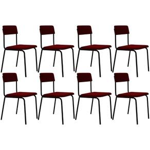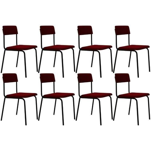 ColorSimple: Vermelho | É dobrável: Não | Firmeza: Firme | Cor da estrutura da cadeira: Preto | ColorFamily: Vermelho | ColorSupplier: Vermelho Vinho | Altura da cadeira: 81 cm | ProductHeight: 243 cm | MaterialFamily: Aço, MDP e Veludo | Model: Sense | ProductLength: 51 cm | ProductWarranty: 90 dias após o recebimento do produto | Desenho do tecido: Liso | ProductContents: 08 Cadeiras | SupplierSimpleName: Kit 08 Cadeiras Estofada Para Sala de Jantar Sense Preto C01 Veludo Vermelho Vinho - Lyam Decor | Espessura do assento: na | ProductWeight: 43,2 Kg | ProductWidth: 48 cm | Cor: Vermelho vinho | É empilhável: Não | Profundidade do assento: 40 cm | Peso máximo suportado: 120 kg | Material do estofamento: Aço, MDP e Veludo | SizeDescription: Altura: 243 cm x Largura: 48 cm x Profundidade: 51 cm | ProductInstructions: Produto para uso em ambiente interno, nao devendo ficar exposto ao sol, calor e umidade excessivos. | Cor do assento: Vermelho vinho | Profundidade da cadeira: 51 cm | Fabricante: Lyam Decor | OriginCountry: Brasil | Color: Vermelho | Cor do estofamento: Vermelho vinho | É cadeira de balanço: Não | Material: Estrutura em Aço e MDP, Revestimento em Veludo | OriginState: PR | Largura da cadeira: 47,5 cm | Requer montagem: Não | Altura do assento a partir do solo: 47,5 cm | Largura do assento: NA | Tempo de montagem: na