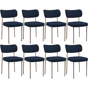 Depth Front To Back: 41 | Profundidade: 41 | Altura: 80 | DepthWidthSideToSide: 41 | Largura: 45 | Lado a Lado: 41 | OriginState: PR | Material: Encosto e assento estofados com espuma laminada. Estrutura fixa em aço carbono com pintura epóxi na | ProductInstructions: Produto para uso em ambiente interno, nao devendo ficar exposto ao sol, calor e umidade excessivos. | SupplierSimpleName: Kit 08 Cadeiras Estofadas Para Sala De Jantar Melina Base Arena L02 Suede Azul Marinho - Lyam Decor | OriginCountry: | ProductHeight: 124 cm | ColorSupplier: Azul Marinho | MaterialFamily: Madeira, Tecido. | ColorSimple: Azul | Color: Azul | ColorFamily: Azul | ProductContents: 08 Cadeiras | Model: Melina | ProductLength: 54 cm | ProductWarranty: 90 dias após o do produto | ProductWeight: 46 kg | ProductWidth: 50 cm | SizeDescription: Altura: 124 cm x Largura: 50 cm x Profundidade: 54 cm